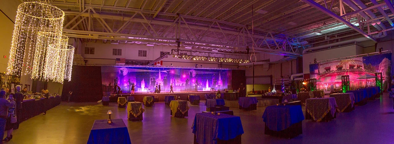 Draping, back drops, sound absorption panels, podiums, & disco balls